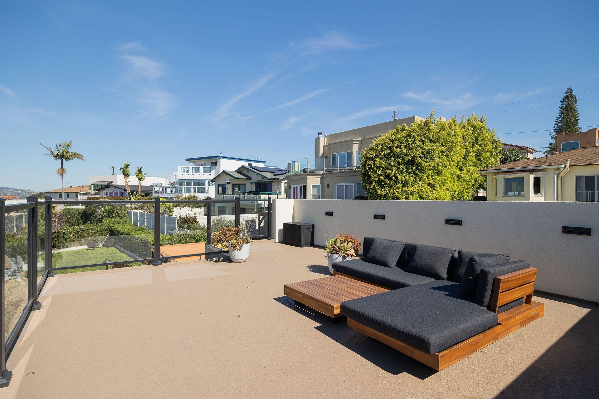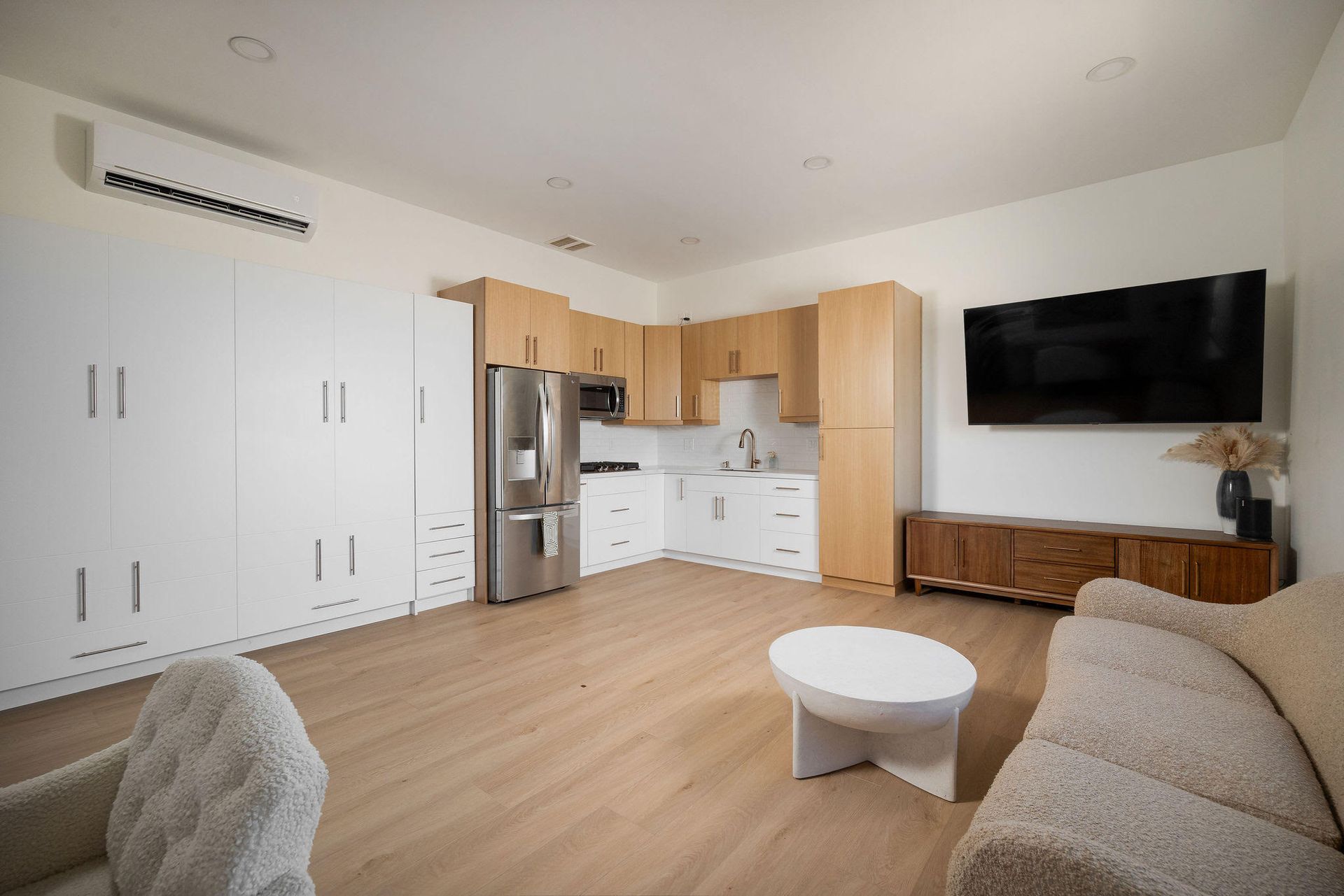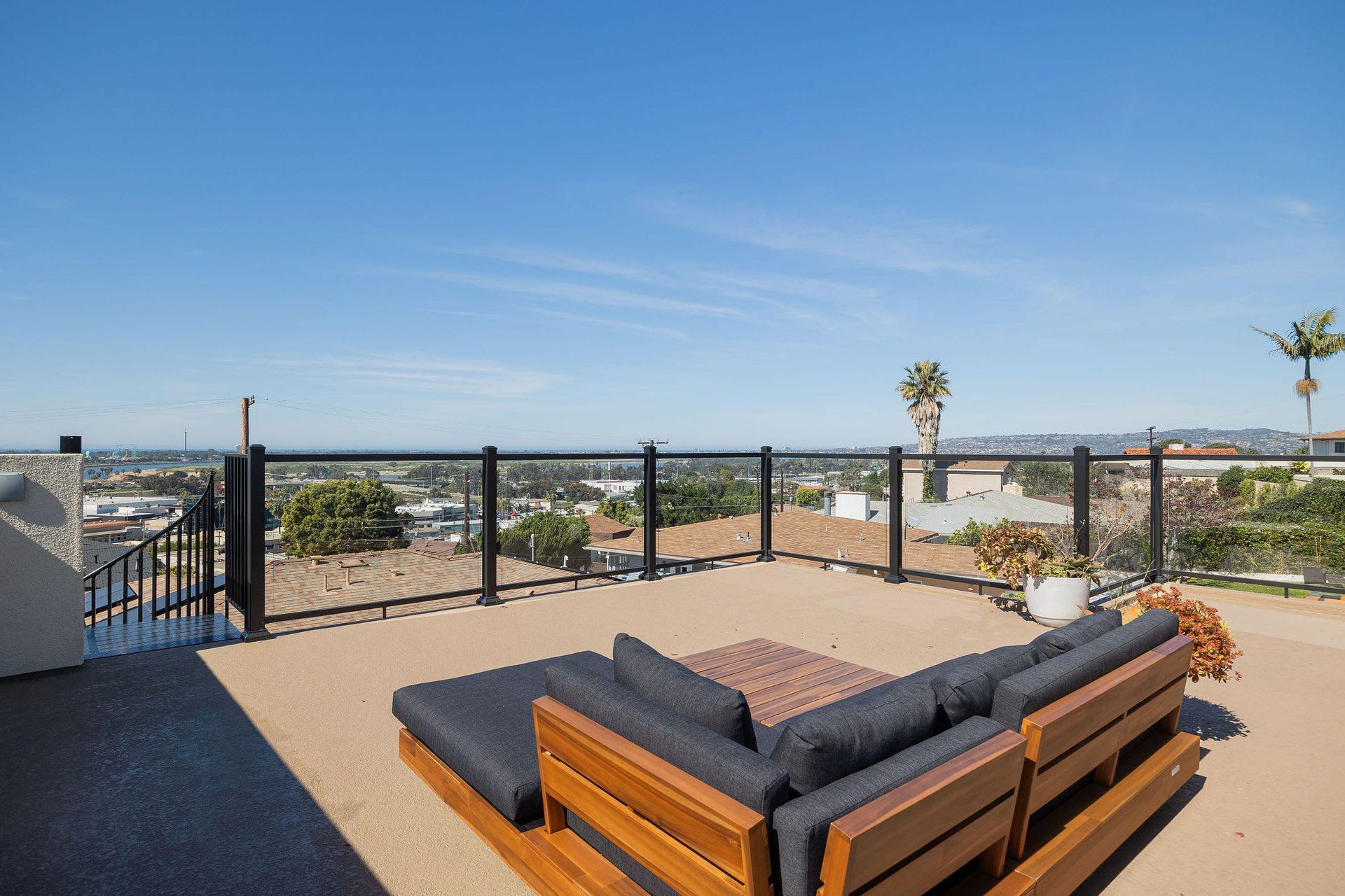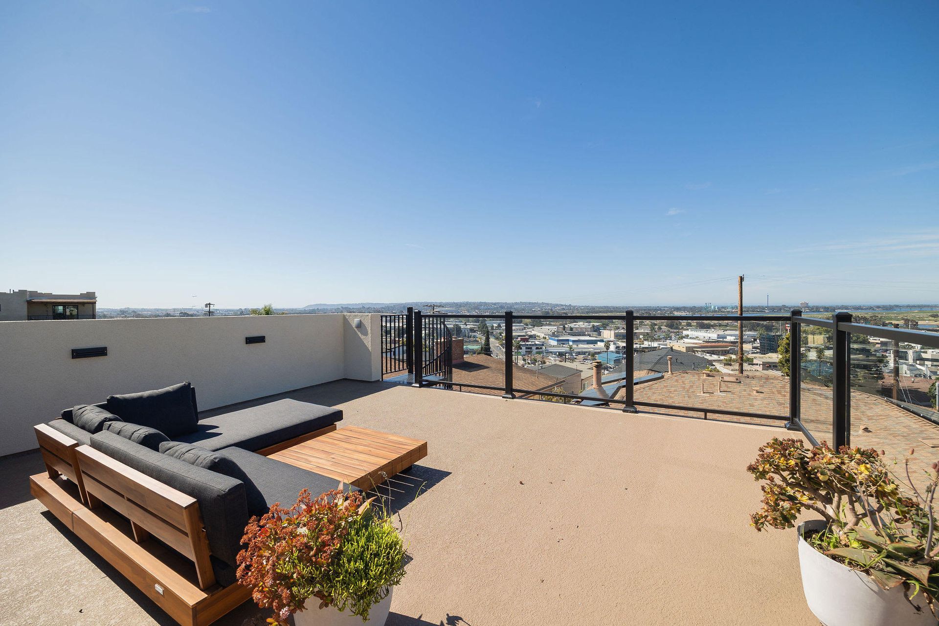 We built a studio ADU, complete with a rooftop deck perfect for enjoying fireworks and ocean views. This modern studio ADU features a sleek living area with kitchen, bathroom and plenty of storage.